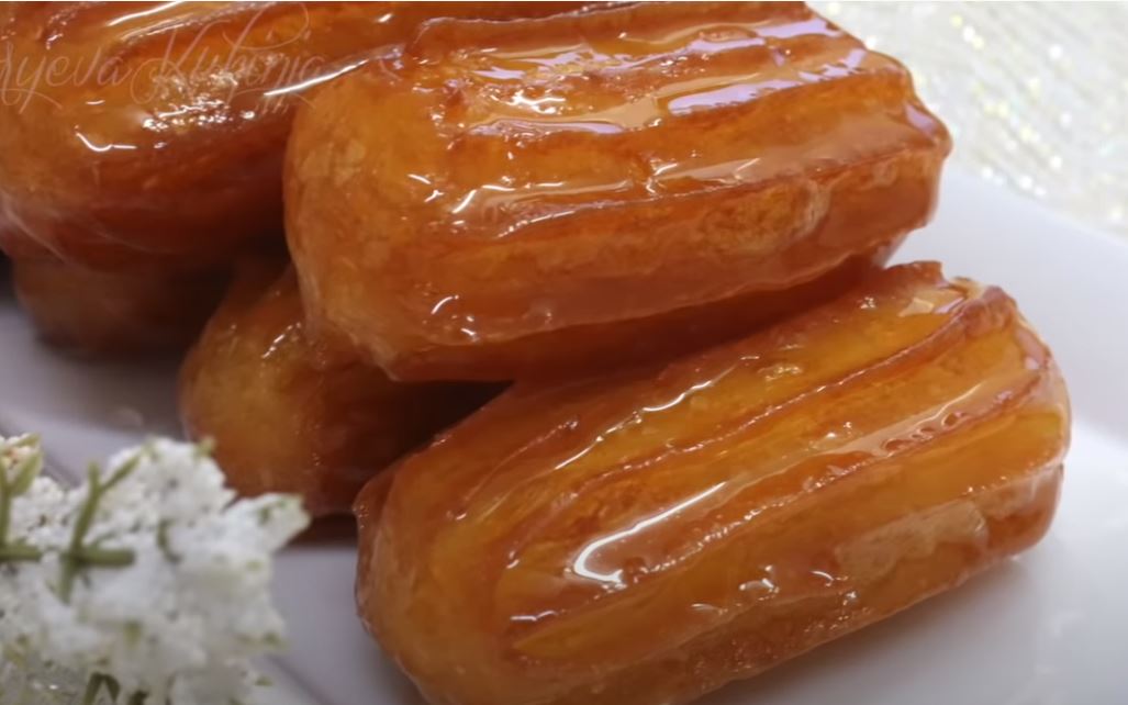 Када поприме златну боју по жлебовима вадити их решеткастом кашиком и стављати их у сируп (агду).