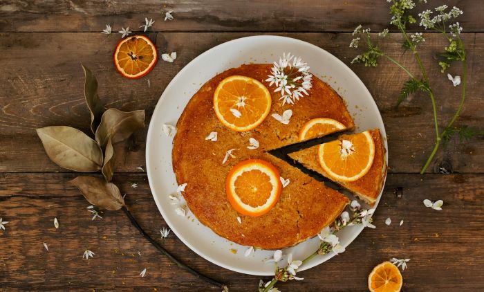 Умутите јаја са шећером па мало по мало додајте млевене бадеме, прашак за пециво, рум и испасирано воће. Рерну загрејте на 180 степени. Смесу излијте у калуп обложен пек папиром и поравнајте па ставите да се пече 45 до 55 минута.