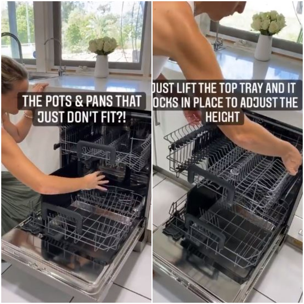 Потом је хитро подигла горњу преграду, која заправо може да се помери и направи место за високе комаде посуђа!