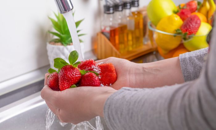 Коришћење мешавине сирћета и воде може помоћи да се нежно очисте јагоде које су можда биле изложене пестицидима и другим хемикалијама. Поред тога, пут од велике фарме до полице продавнице прехрамбених производа је дуг, а њима је можда је руковало много различитих људи.