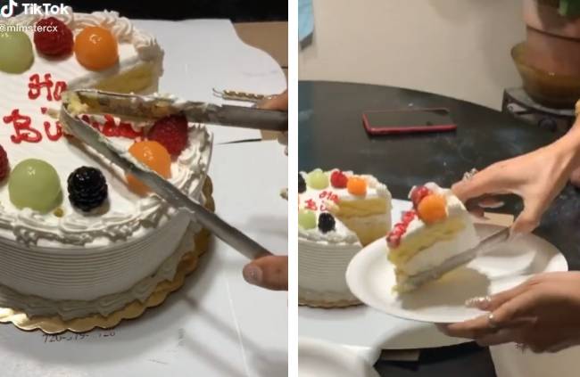 Једна домаћица је открила како да исечете исте парчиће торте и поделила клип на друштвеној мрежи Тик ток. За идеално сечење ове посластице тајна је да не користите нож већ - хватаљке за храну. Користећи задњи део хватаљки исеците парче у облику троугла и једноставно га подигнете и одложите на тањир без ломљења или испадања делова посластице.