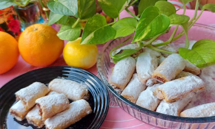 Ако треба додати 2-3 кашике млека. Развити танко, па на дно стављати крем и доњу страну пресавити и добро изравнати ивице. Мало рукама правити ваљак, па сећи на десетак цм ролатиће и ређати у подмазан плех.