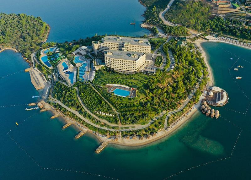 На око 17 километара од аеродрома, у околини места Гуверцинлик, на сопственом полуострву, налази се Ла Бланцхе Исланд 5*, који ће вам пружити све о чему маштате, а можда и више од тога. По полуострву сте сигурно ходали, али да ли сте на полуострву летовали?
