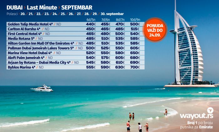 ULTRA LAST MINUTE понуду за поласке 22. / 24. / 25. / 28. / 29. септембра.