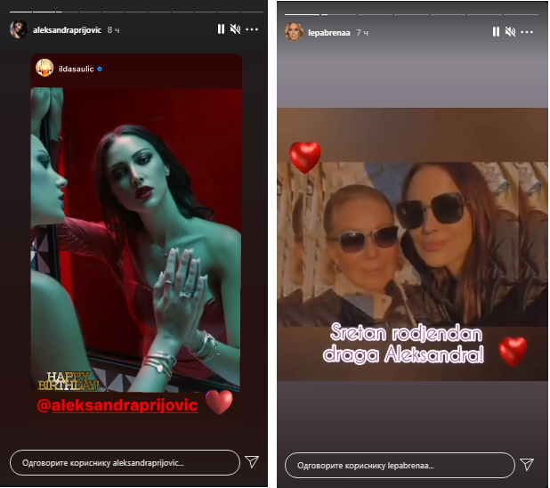 Убрзо потом, Александри Пријовић на друштвеним мрежама стигле су и бројне друге честитке, а међу њима су биле и певачице Илда Шаулић и свекрва, славна Лепа Брена.
