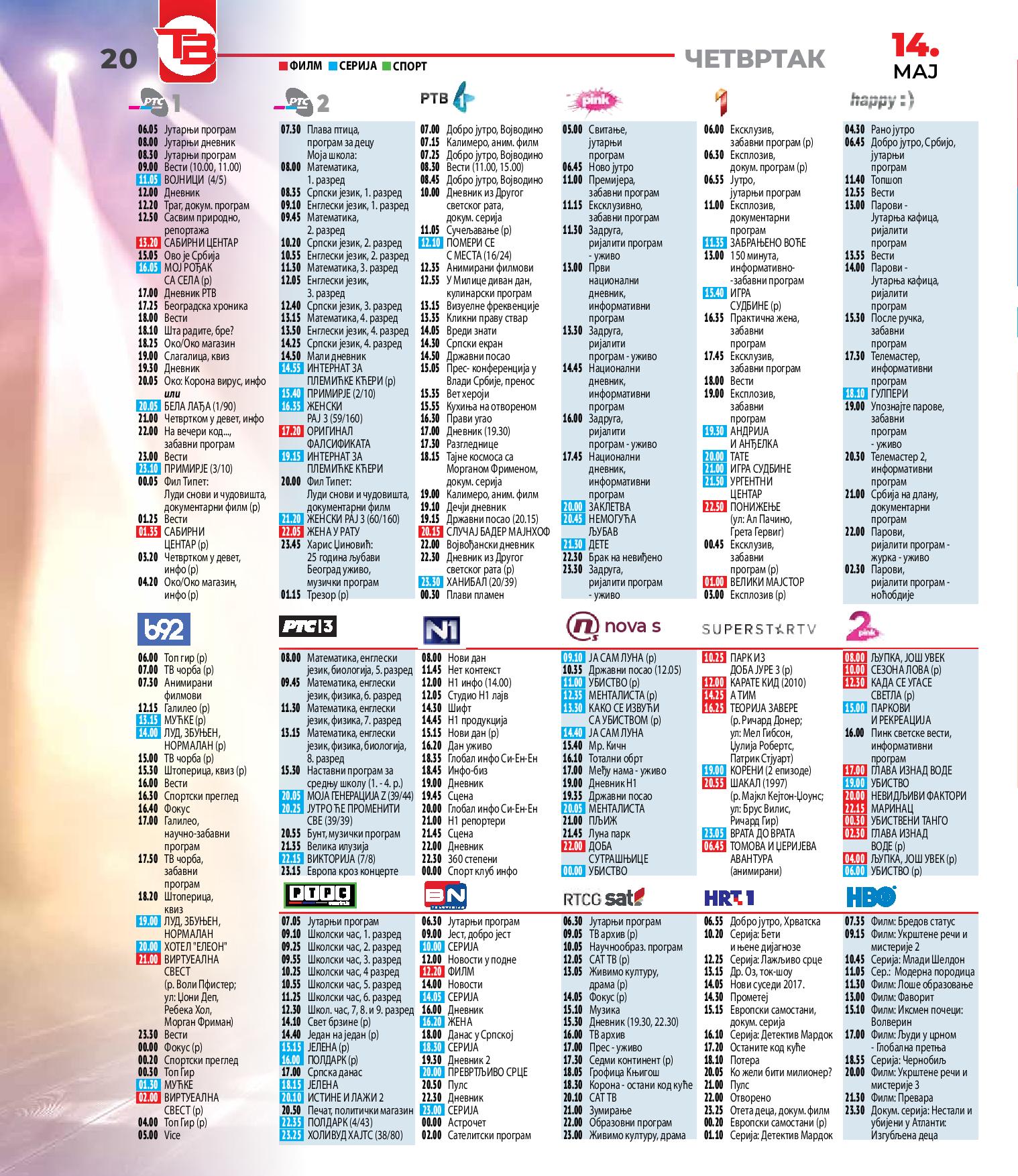 Комплетан ТВ програм свих телевизија