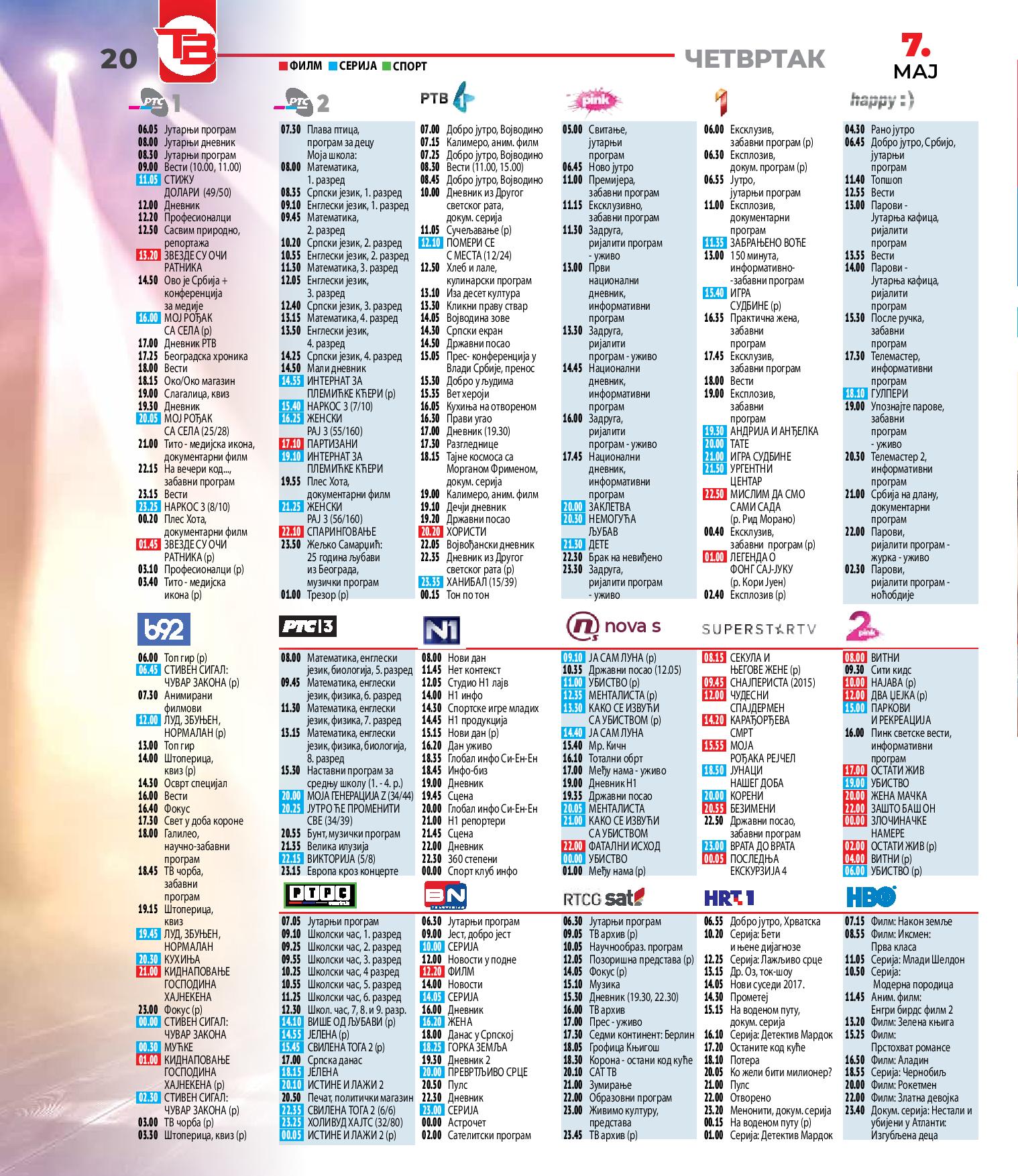 Комплетан ТВ програм свих телевизија