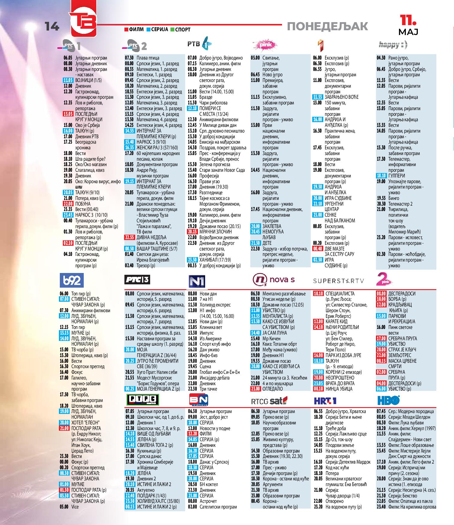 Комплетан ТВ програм свих телевизија