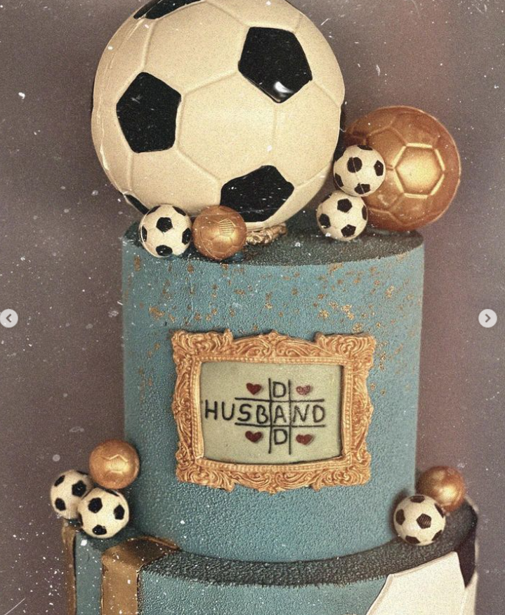 Она му је приредила изненађење. Око њега је била гомила балона, а оно што је привукло највише пажње била је торта са фудбалским лоптама и поруком да којој пише "муж и тата".