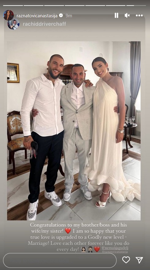 Прву фотографију са венчања младог пара објавио је Немањин возач, који им је том приликом честитао ново поглавље у животу.