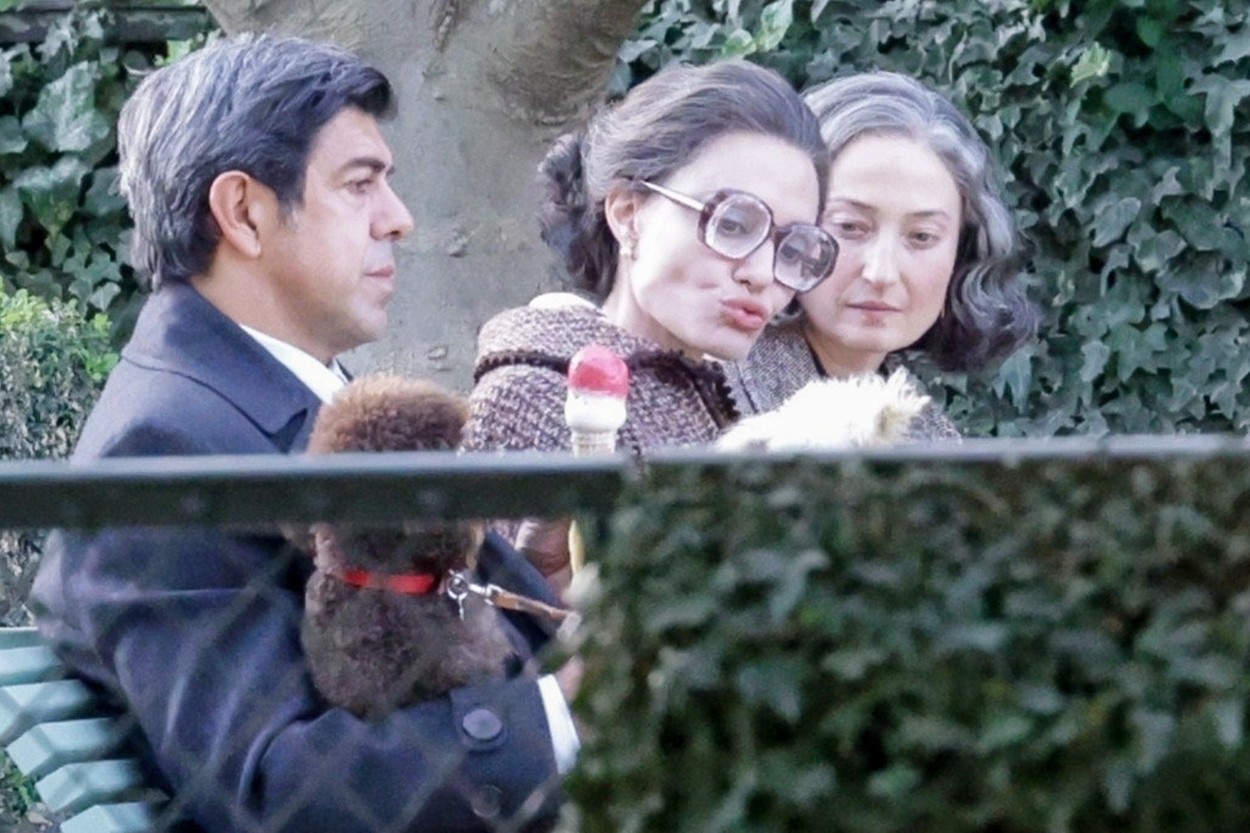 Глумица (48), која глуми легендарну оперску певачицу Марију Калас у биографском филму, фотографисана је у винтиџ гардероби - носила је комплет од твида уз чизме од преврнуте коже.