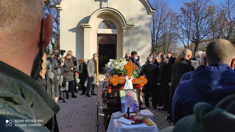 Испред капеле постављен је ковчег где Маринкова супруга, Славица, синови Никола и Марко и снаје Сара и Бојана, примају саучешћа од бројних људи.