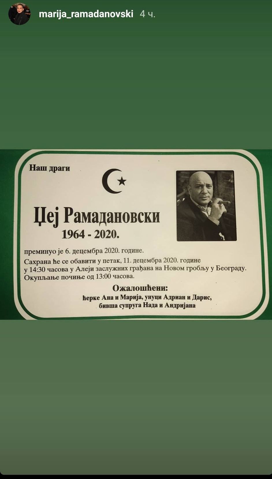 Руле је такође открио да ће Рамадановски на вечни починак бити испраћен како је желео, уз музику, а виолине ће свирати његову најтужнију песму.