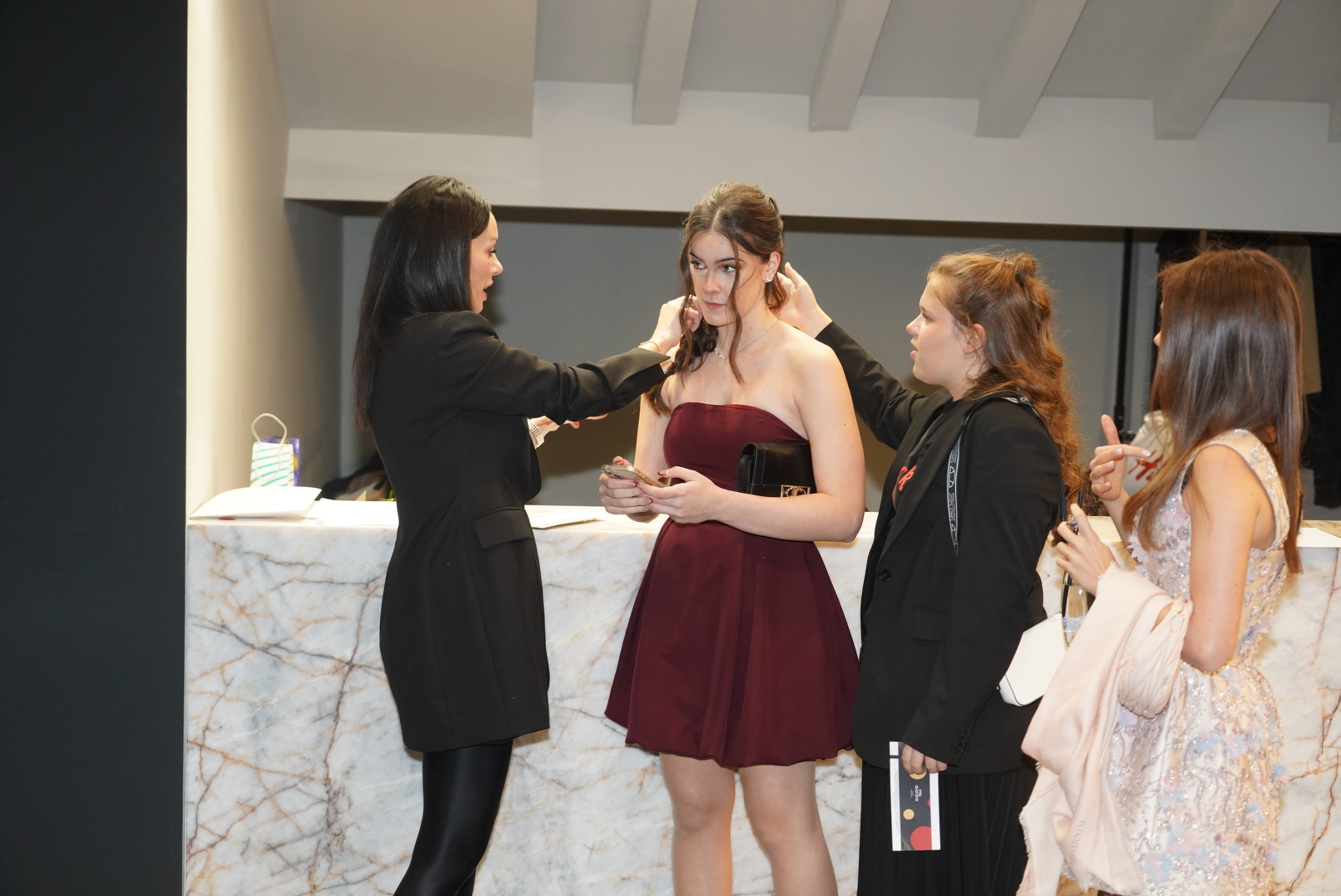 Вера је на премијеру дошла у бордо хаљиници А кроја, а понела ју је у комбинацији са црним краћим чизмама са мањом потпетицом.
