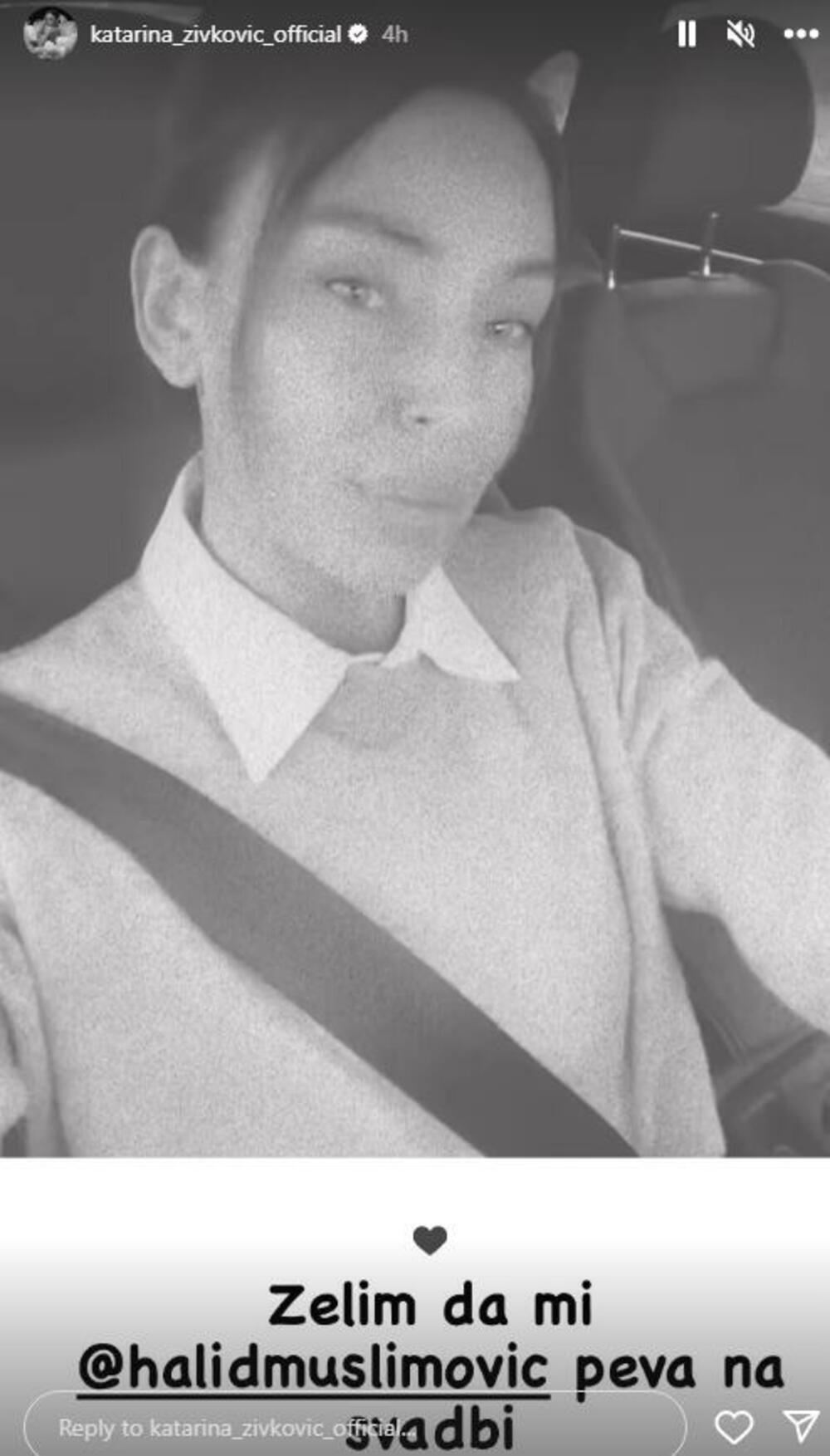 - Желим да ми Халид Муслимовић пева на свадби - писало је на фотографији из аутомобила коју је Каћа објавила.