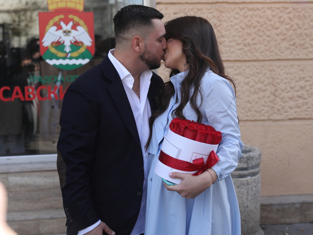 У једној београдској општини, Милош и његова изабраница Нина, изговорили су судбоносно да, а након грађанског венчања, срећно и задовољно позирали су пред новинарима, који су се у великом броју окупили испред општине.
