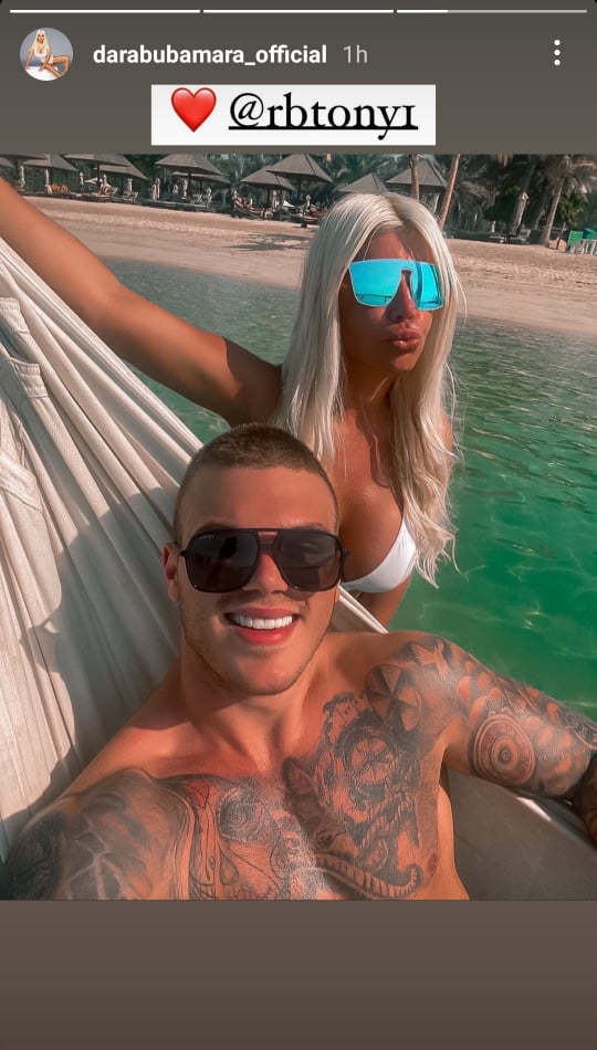 Међутим, Дара је одмах демантовала медије, објавивши фотографију на свом Инстаграм профилу, на којој се љуби са дечком Тонијем и тиме показала да су у фантастичним односима и да уживају.
