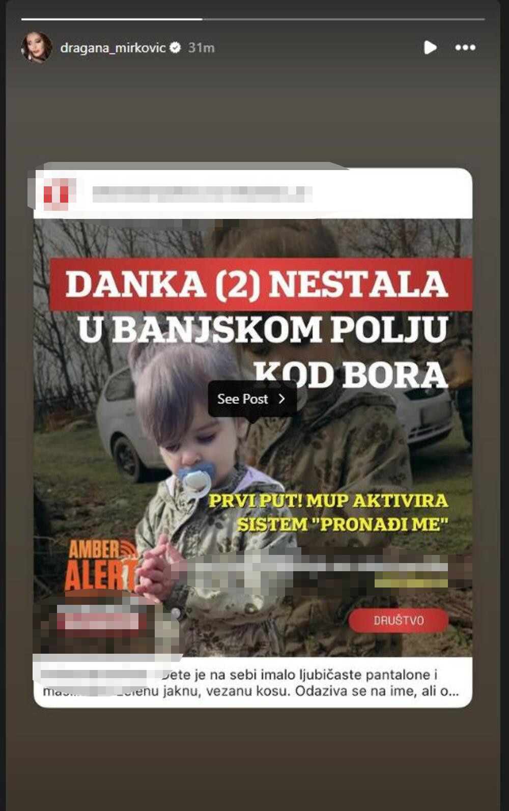 Драгана се на свом Инстаграм профилу огласила и поделила фотографију мале Данке из Бора.