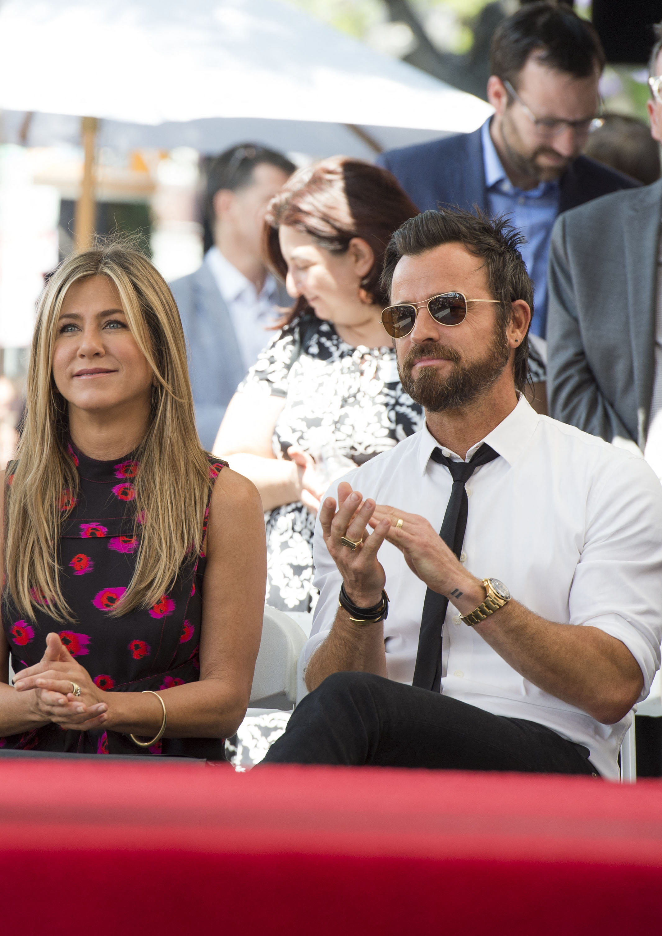 Џен и Џастин су се венчали на приватној церемонији 2015.год, у свом дому у Бел Ејру, у групи најужих пријатеља. Брак је уследио након трогодишње веридбе, али нажалост потрајао је само две године, након чега су остали у пријатељским односима. Након драматичног разлаза од Бред Пита, многи су навијали за звезду Пријатеља када је упознала колегу Џастина 2007.год. Наводи се да је пар био толико заљубљен, да нису приметили разлике које су касније довеле до развода. Познато је да је Џастин био Њујоркшки хипстер, док је Џен водила много мирнији живот. Према извору, Џен је преферирала живот у Лос Анђелесу, док је Џастин више нагињао ка Источној обали.