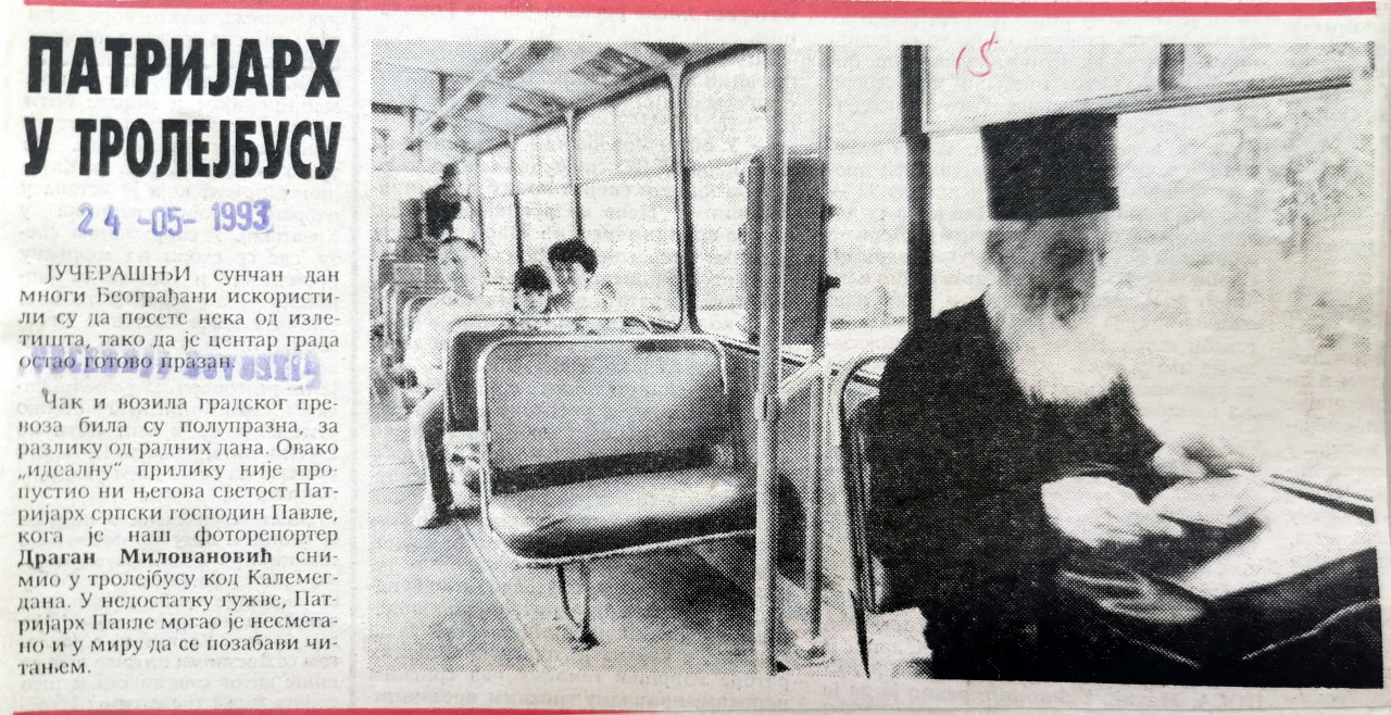"ПАТРИЈАРХ ПАВЛЕ у тролејбусу – ништа чудно када причамо о 1993. години