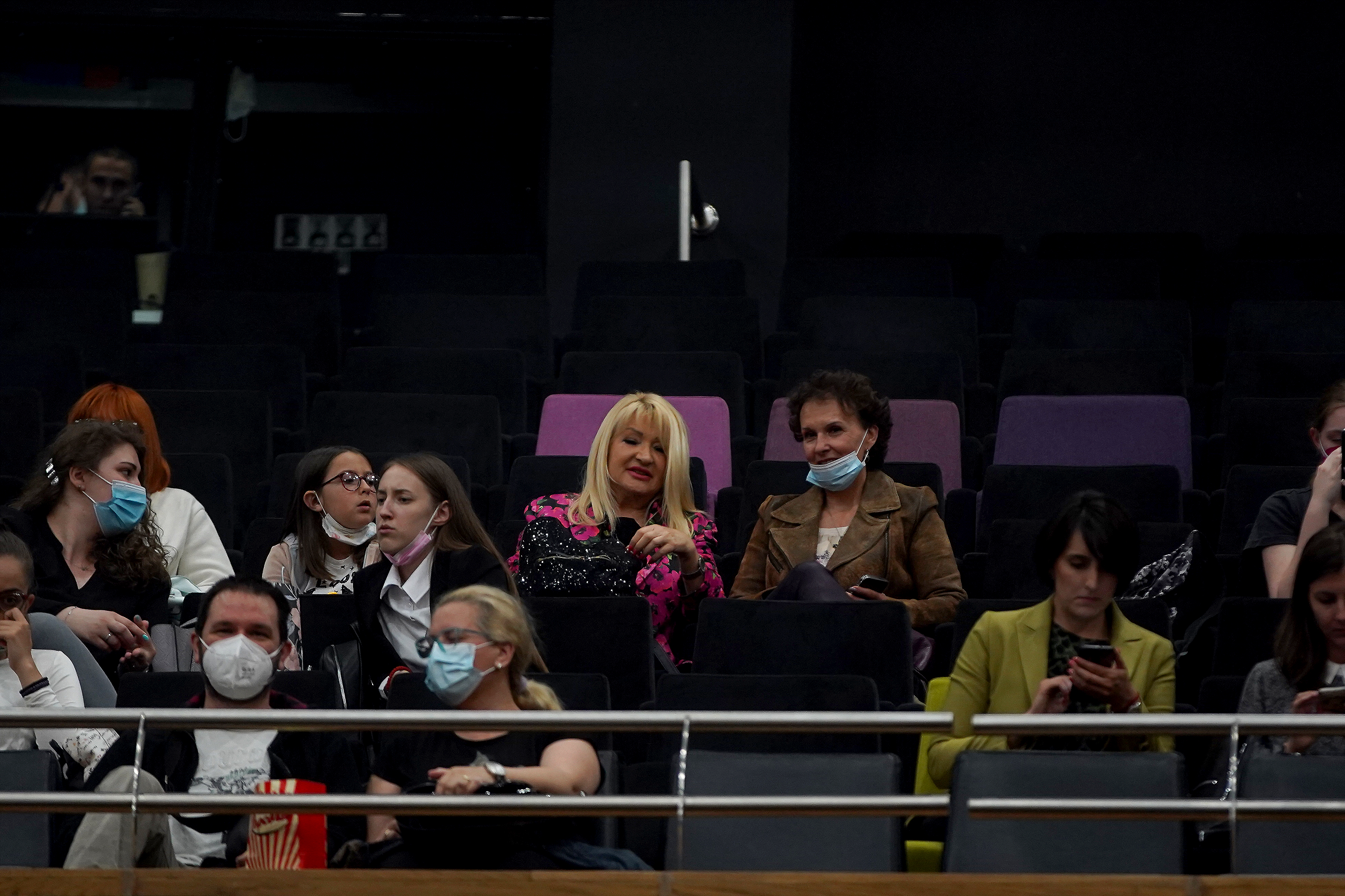 Тако је било и синоћ, када је Гоца Лазаревић била једина особа у публици која није носила епидемиолошку маску.