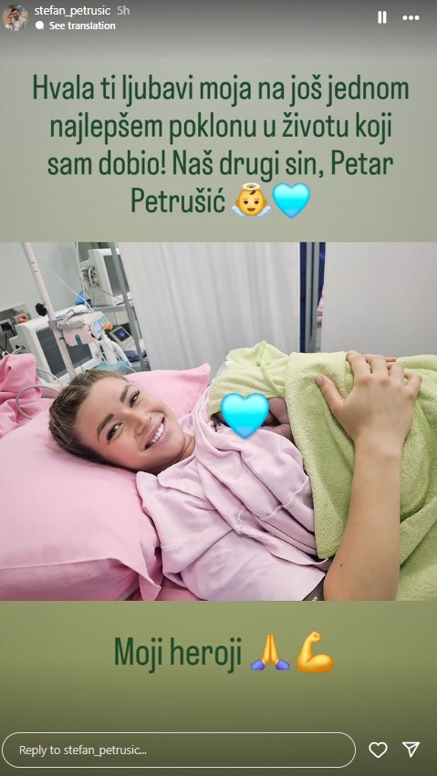 – Хвала ти љубави на још једном најлепшем поклону у животу који сам добио! Наш други син, Петар Петрушић. Моји хероји – написао је певач поносно уз слику из породилишта док су се низале честитке пријатеља и колега.