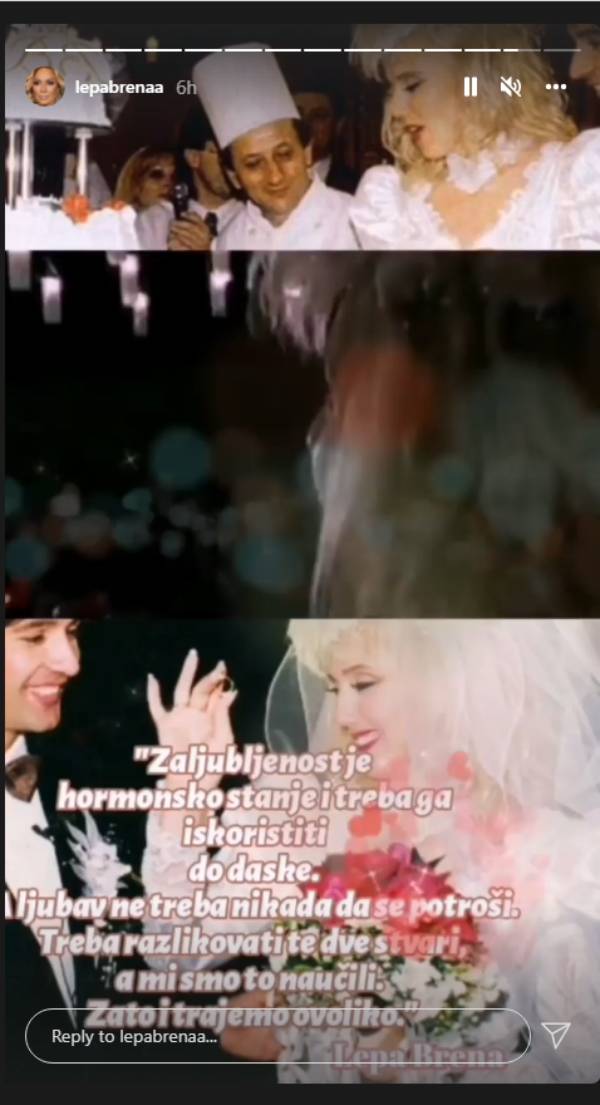 Лепа Брена на свом Инстаграм профилу, поделила је емотиван снимак ње и супруга, којим му је честилтала 30 година брака. Видео је састављен од њихових заједничких фотографија у последње три деценије.