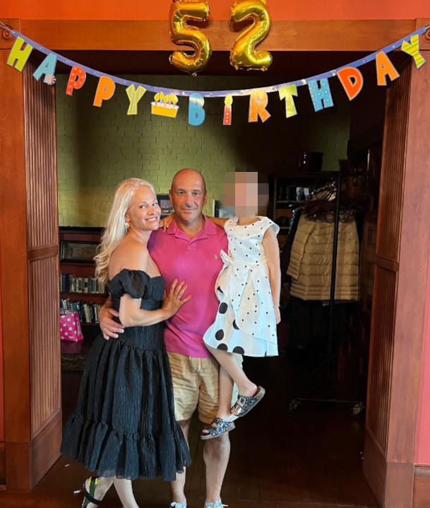 Илдин супруг Бојан је прославио свој 52. рођендан са њима, а честитке су стизале са свих страна. Илда је за ту прилику обукла црну хаљину са спуштеним раменима и штикле са јако занимљивим принтом, Бојан је био у розе мајици и браон бермудама, а ћерка Ема у преслаткој белој хаљини са црним туфницама.