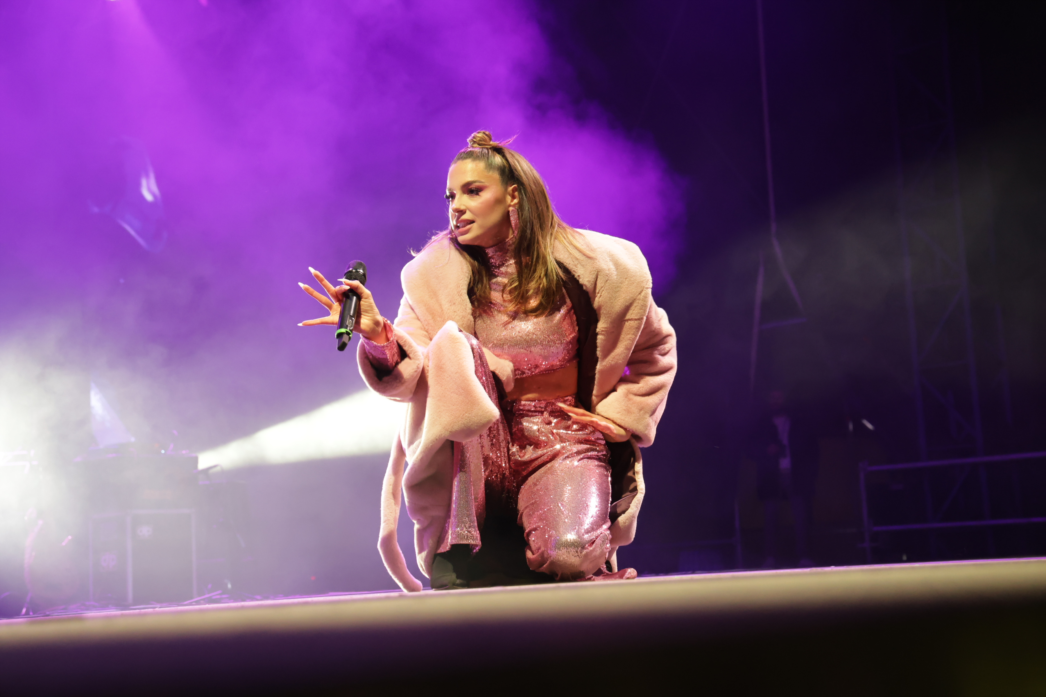 Певачица Сара Јовановић, познатија као Сара Јо, синоћ је наступала на дочеку Нове године у Београду на води где је енергичним наступом забављала бројну публику.