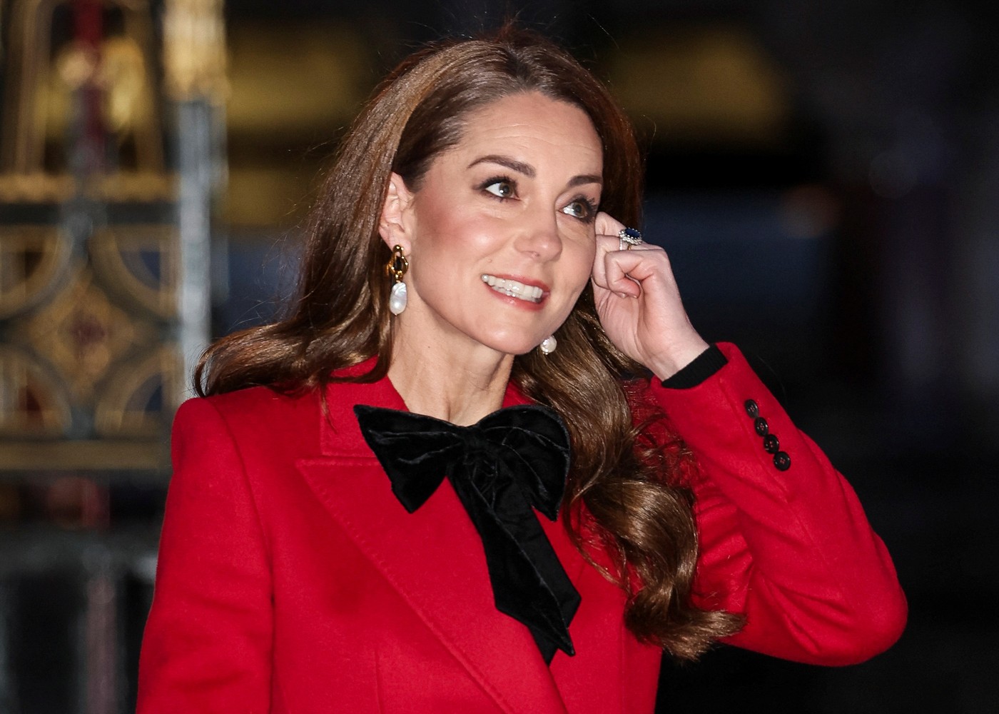 Принцеза од Велса изгледала је елегантно у црвеном капуту Александра Меквина, са изразитом црном машном, коју је удружила са црним чизмама од антилопа.