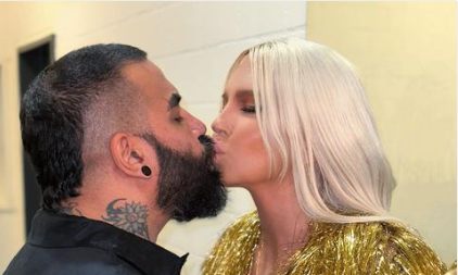 У својој новој објави Јелена се појављује сва у златном, како у загрљају љуби мушкарца црне косе.
