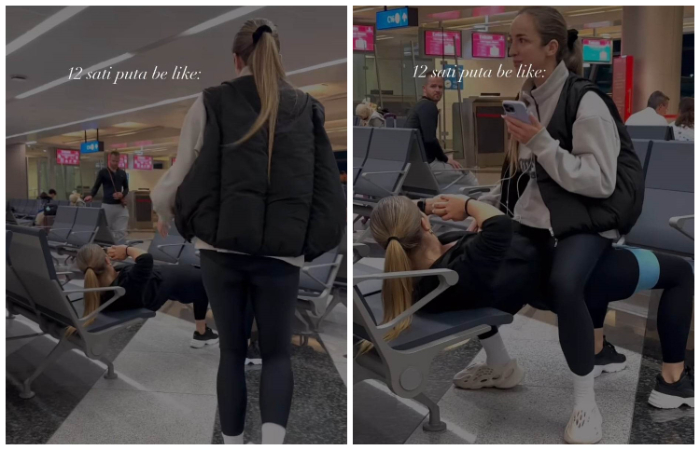 Она је отишла и корак даље, па је у једном тренутку решила да уради пар вежби док чека лет, а на запрепашћење многих, придружила јој се другарица која ју је узјахала, у буквалном смислу речи.