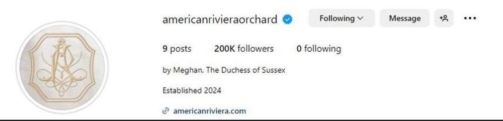 Наиме, Меганин нови веб-сајт и Инстаграм носе мало необично име, потпуно невезано за њене титуле и каријеру до сада: Америцан Ривиера Орцхард (Воћњак америчке ривијере).