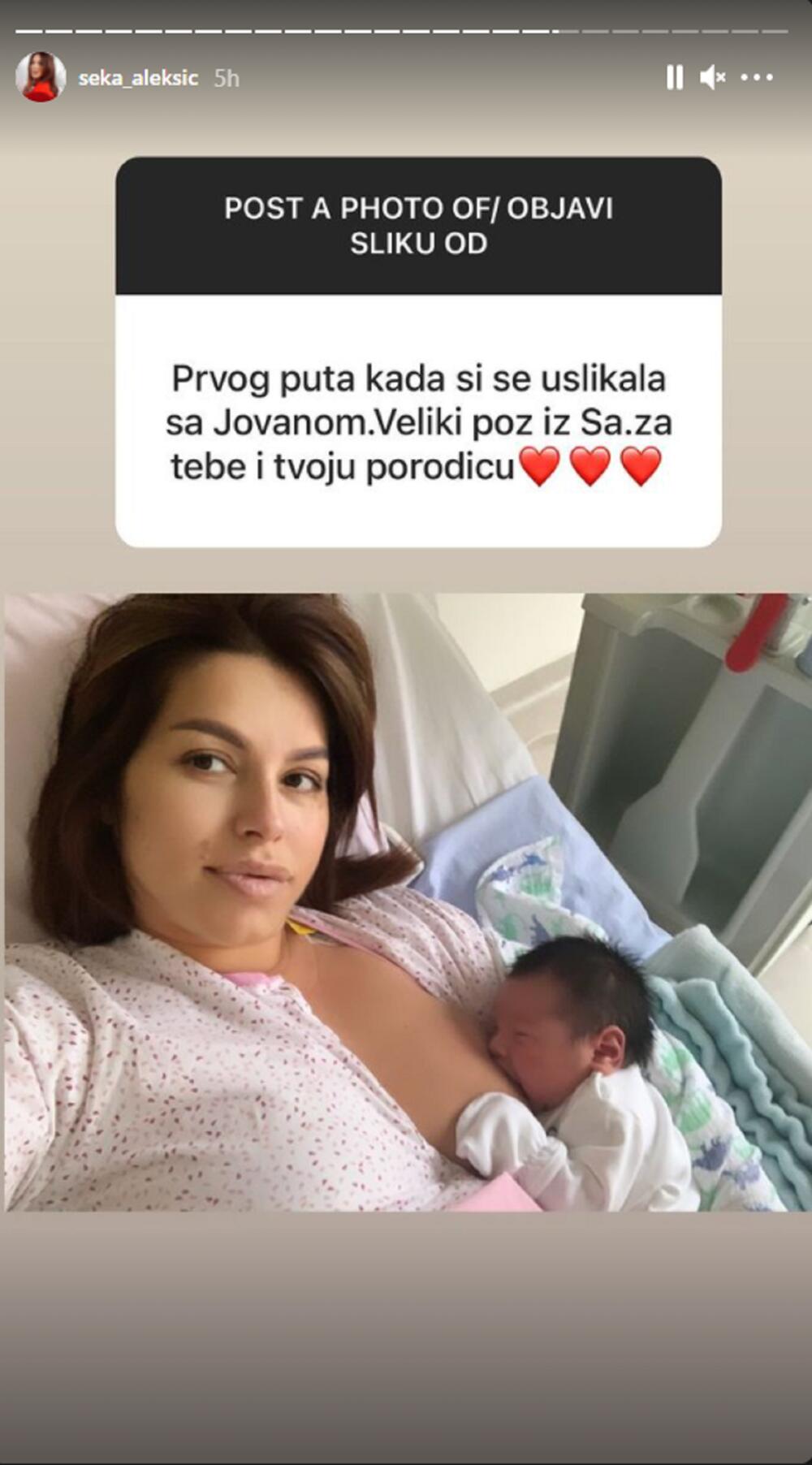 Певачица је одлучила да са својим пратиоцима подели до сада невиђену слику из породилишта. Наиме, један од фанова замолио је Секу, да објави слику са порођаја. Она се ни тренутак није устручавала, већ је врло радо поделила фотографију из порођајне сале.