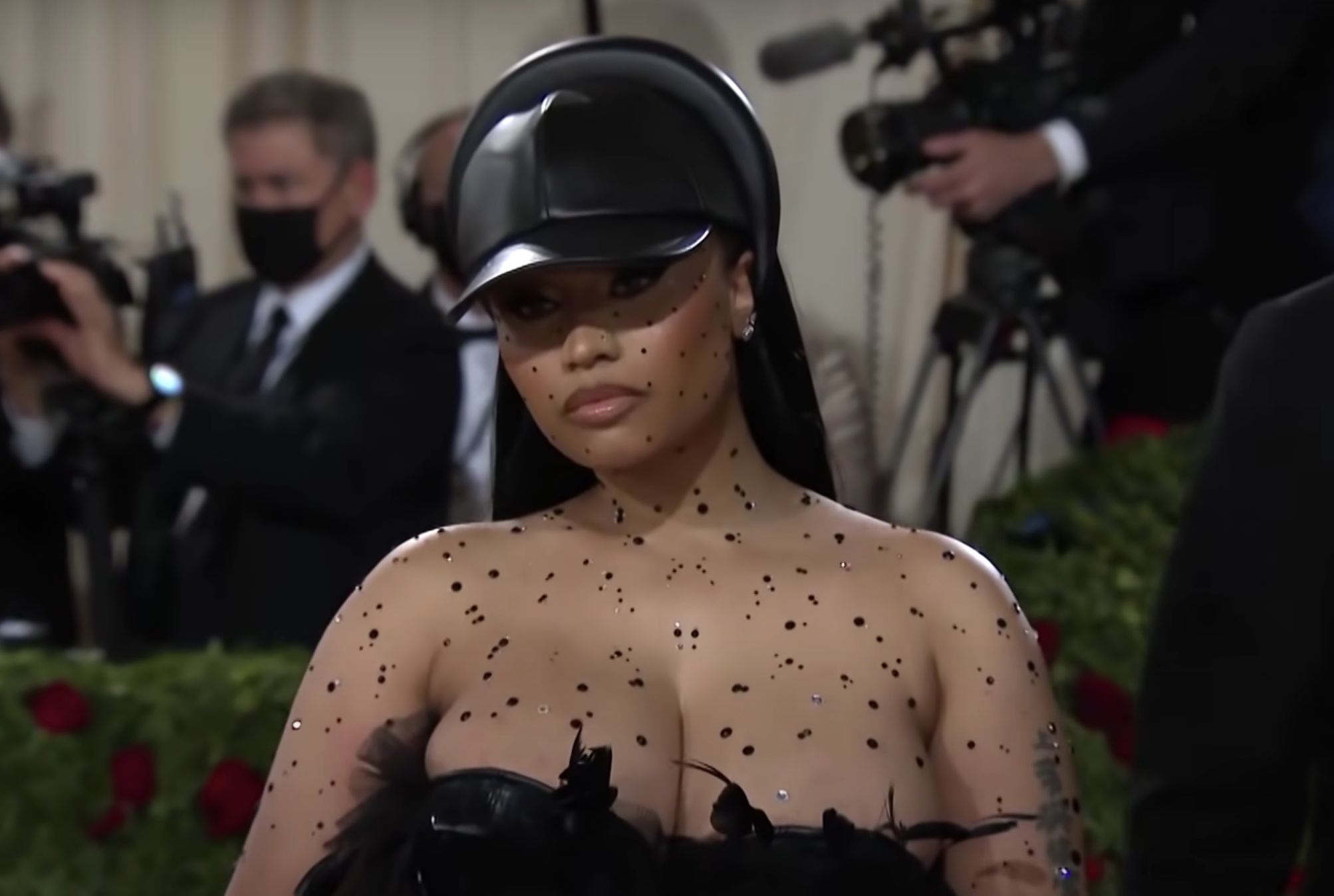 Тема догађаја 2022. у Музеју уметности Метрополитен била је „Позлаћени гламур“. Минаж се појавила обучена скроз у црно са тачкама преко лица и тела. Док је шетала црвеним тепихом, Минаж је уочила некога коме је одлучила да се супротстави. До овог суочавања је дошло, како медији наводе због "цурења информација", односно да је Минаж опутжила репортера да одаје информације са догађаја.