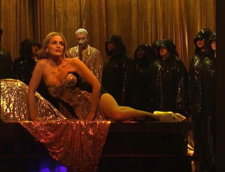 У некој врсти надреалног перформанса, Стоун је већи део песме лежала на кревету, а затим је драматично устала пред крај. Стоунова и у седмој деценији изгледа фатално, као и пре пар деценија када је улогом у Ниским страстима, залудела цео свет.