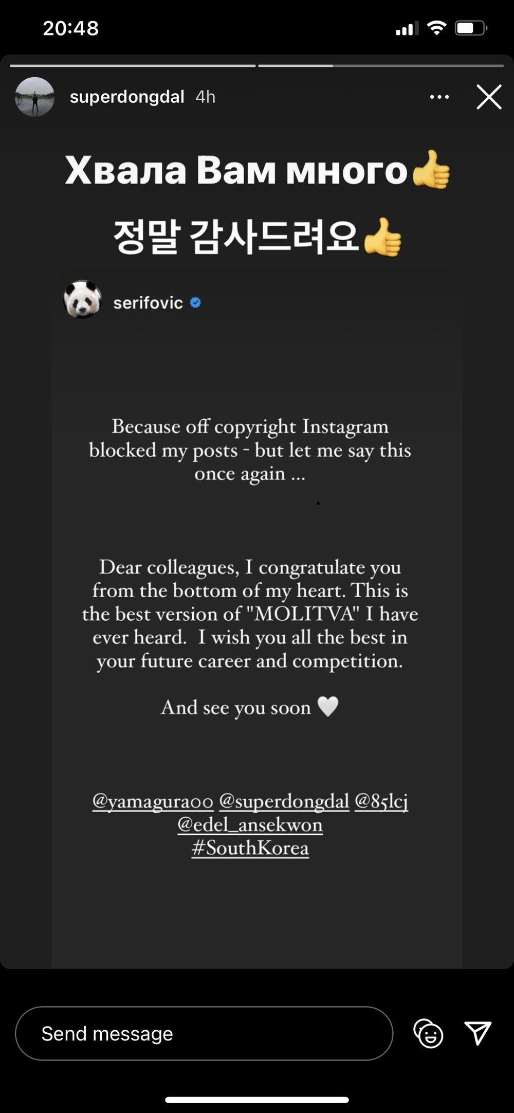 - Драге колеге, честитам вам свим својим срцем. Ово је најбоља верзија песме "Молитва", коју сам икада чула. Желим вам све најбоље у вашој будућој каријери и такмичењима. Видимо се ускоро - написала је Марија на свом Инстаграму.