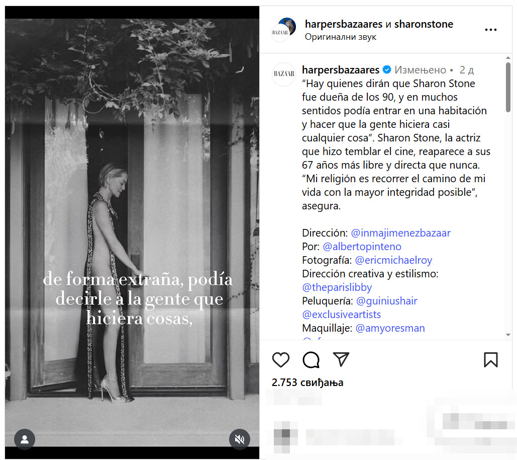 НИ "В" од вулгарности, само неприкосновена лепота и заводљивост без премца. Чувена Шерон Стоун (67) звезда је септембарског броја шпанског издања магазина Харпер'с Базаар и заиста је задивила на новим фотографијама, које су многе подсетиле на култни филм "Ниске страсти" из 1992.