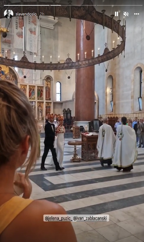 Јелан је инспирацију за венчаницу пронашла у класици. Одабрала је ужи модел до пода који прати дугачки шлеп, а Иван је поносно стајао поред ње у црном оделу.