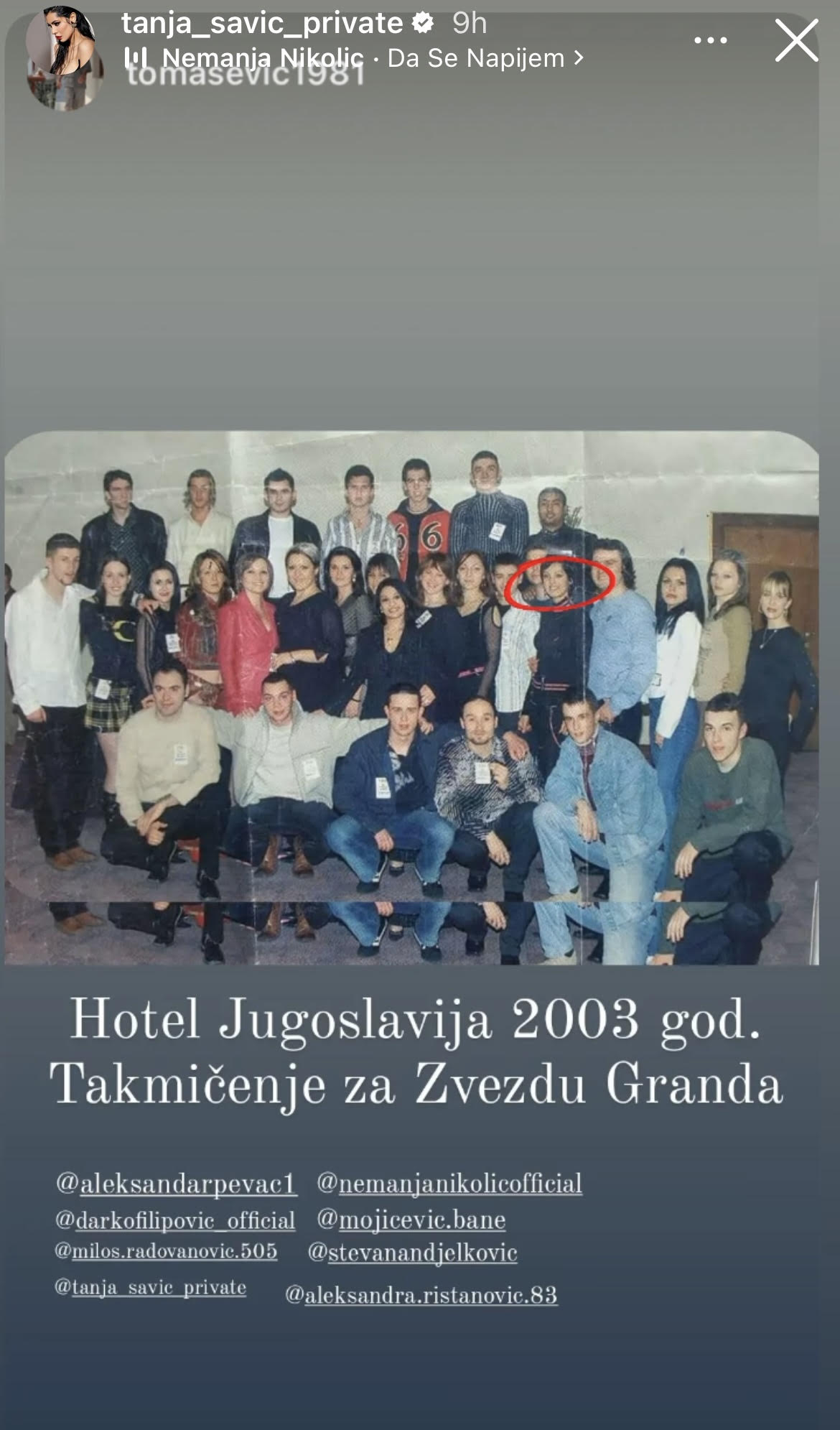 Заједно са њом на тој слици су и њене колеге које су се такође такмичиле у "Звездама Гранда".