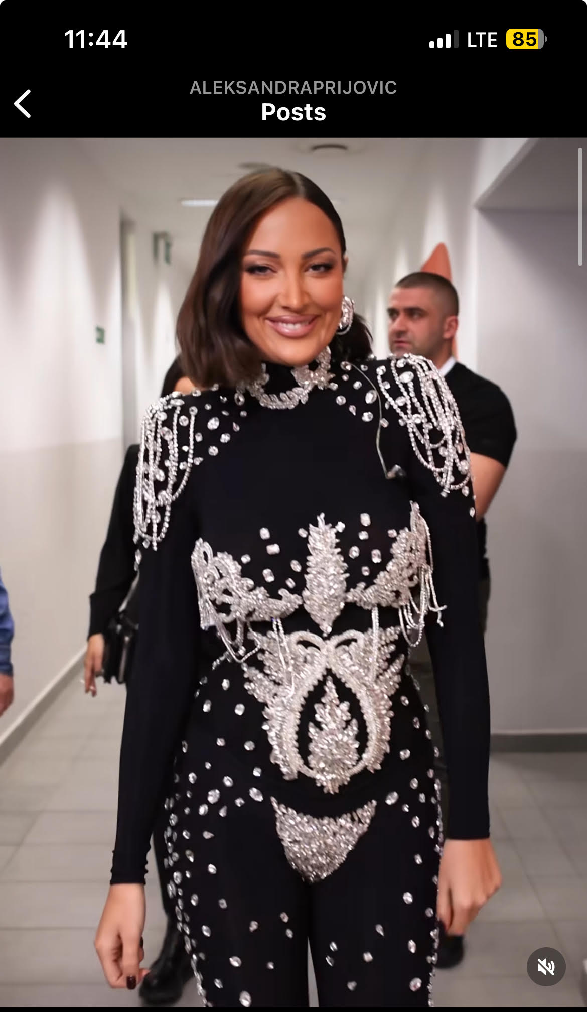 На свом другом наступу у Осјеку Александра Пријовић обукла је уски црни комбинезон који је био прекривен сребрним детаљима. На свом инстаграму поделила је ову прекрасну комбинацију као и кадрове са наступа.