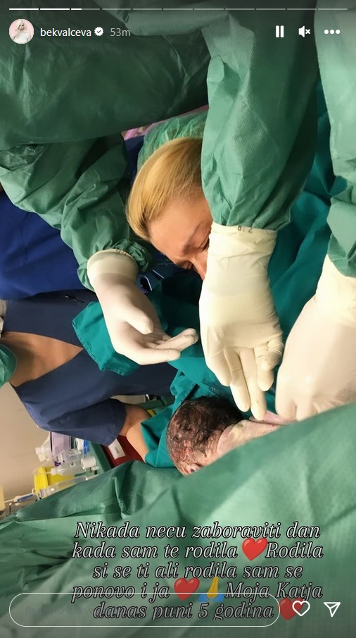 - Никада нећу заборавити дан када сам те родила. Родила си се ти, али родила сам се поново и ја... Моја Катја данас пуни пет година! - написала је уз фотографију на којој се налази у порођајној сали окружена докторима, када је и забележено рођење Катје.