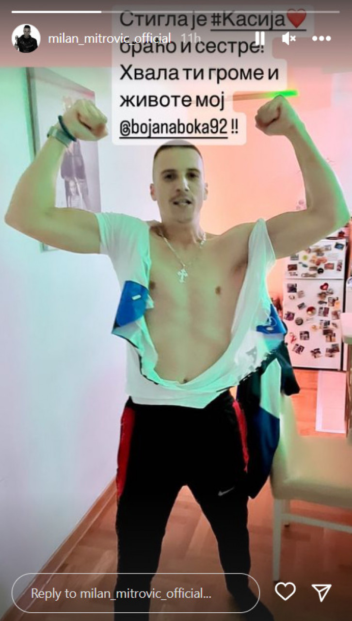 - Стигла је Касија, браћо и сестре. Хвала ти громе и животе моје - написао је Милан и таговао своју супругу Бојану. Милан и његова супруга су у браку седам година, а већ имају једну ћерку.