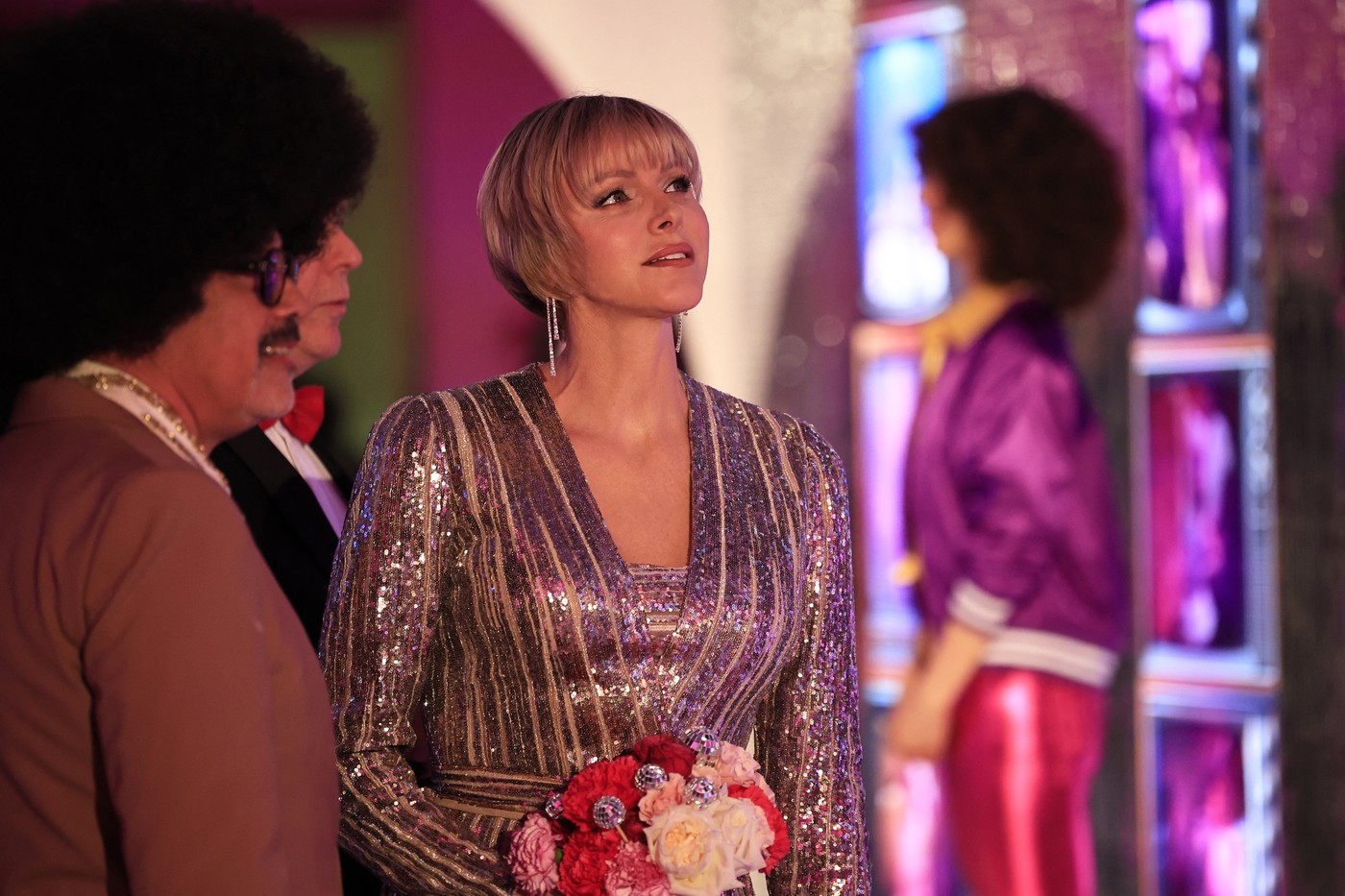 Принцеза Шарлин појавила се у металик комбинезону. Право свечано издање је потпуно у складу са догађајем. Овај стајлинг је велико изненађење иако је супруга Алберта ИИ од Монака и раније умела да носи шљаштећу одечу, у празничним приликама.