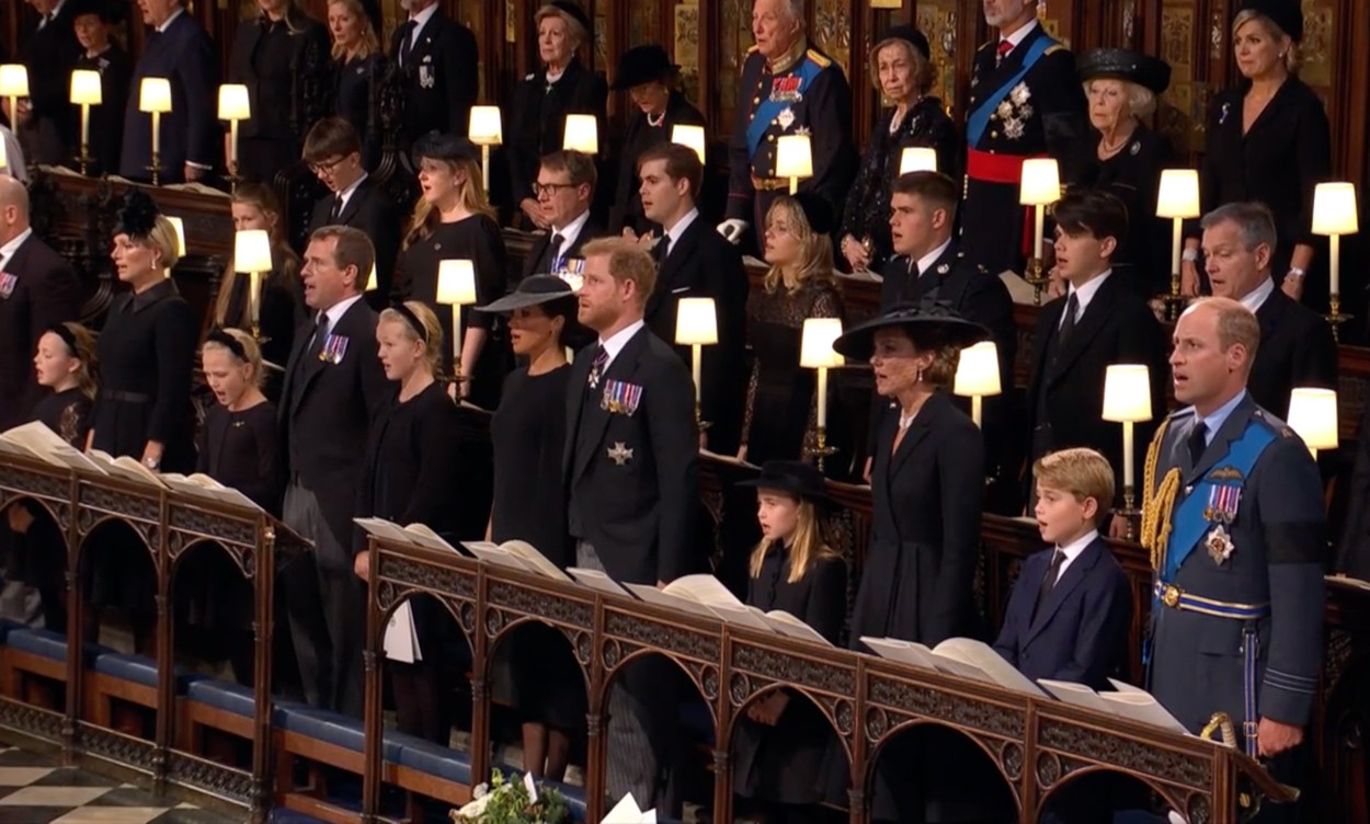 Током сахране није било значајног контакта међу браћом, а ни између Кејт и Меган. Примећен је кратки разговор између Вилијама и Харија, а стручни читач са усана открио је које речи су браћа разменила док је породица заузимала места пред ковчегом краљице.