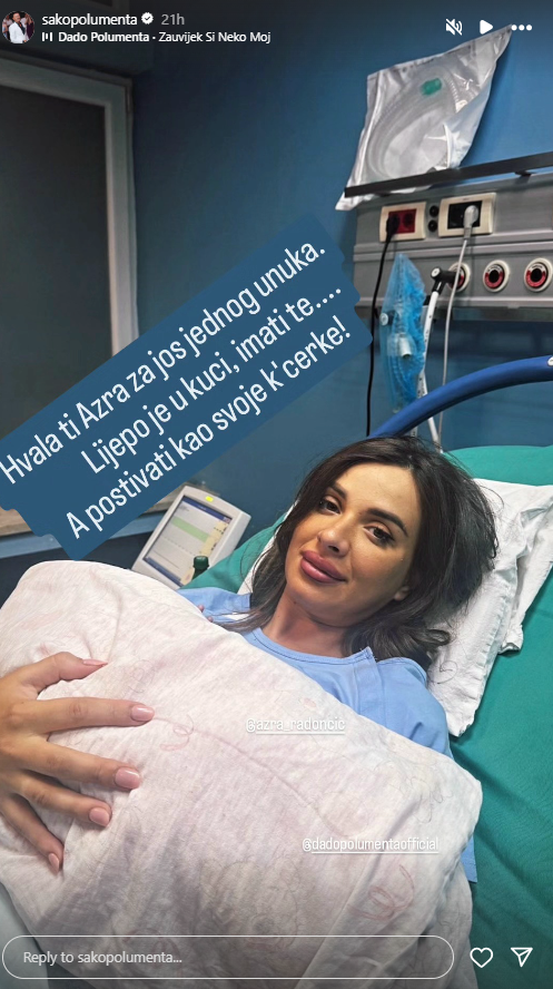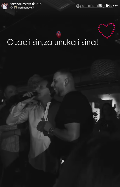 - Хвала ти Азра за још једног унука. Лепо је имати те у кући, а поштовати као све ћерке - написао је Шако, који је потом објавио снимак ако пева са својим наследником који је настао на слављу поводом рођења још једног члана породице Полумента.