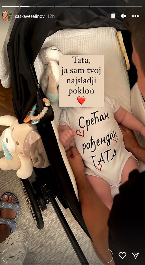 Наиме, она је прво усликала њиховог наследника, а на фотографији се види како Ђоле држи руке поред њега, док носи бодић на којем пише: "Срећан рођендан, тата". Сашка је уз ову објаву додала и: "Тата, ја сам твој наслађи поклон".