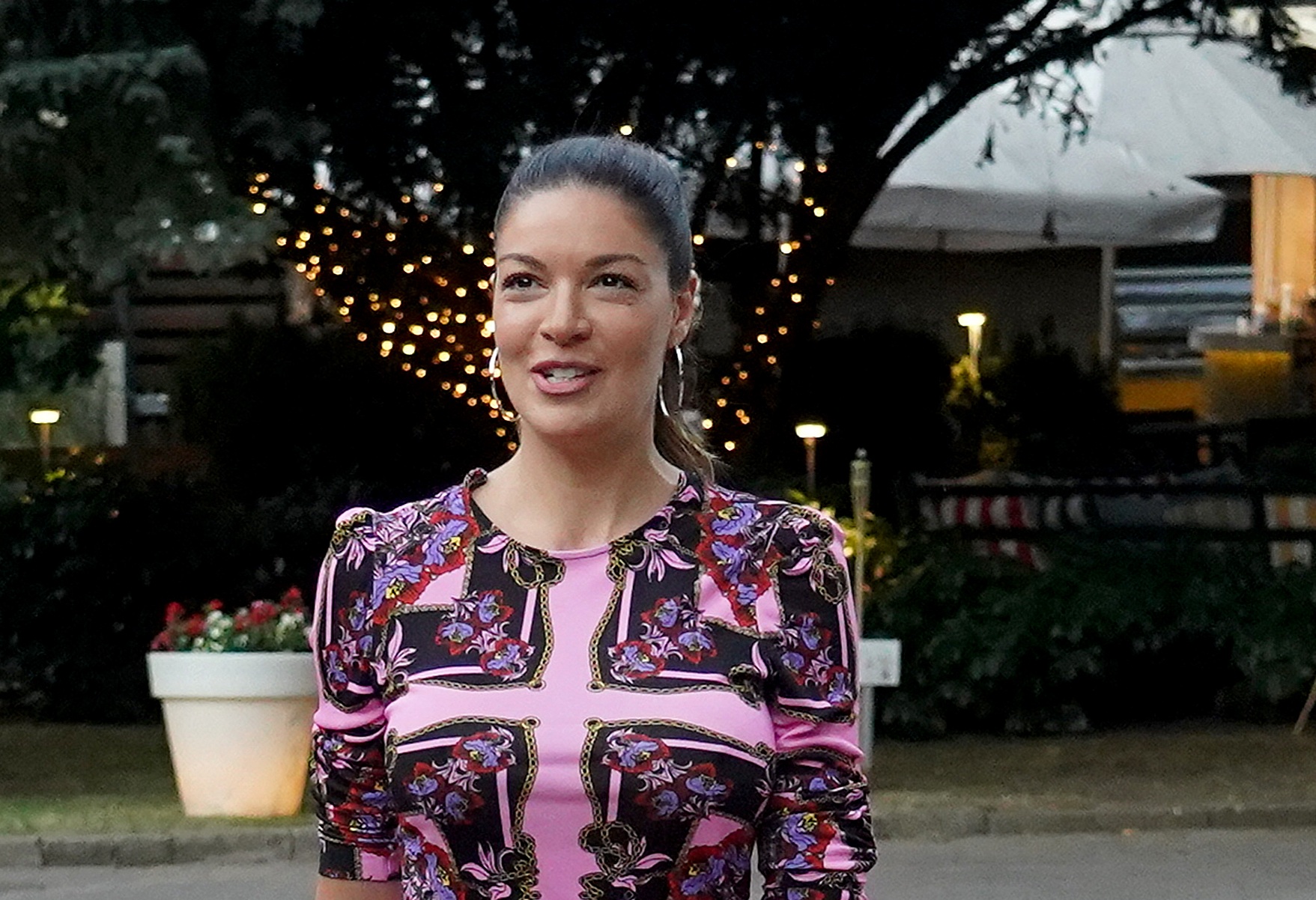 Наиме, телевизијска водитељка Сања Кужет појавила се синоћ на прослави у једном престоничком ресторану у уској цветној хаљини на којој су доминирале љубичасте нијансе.