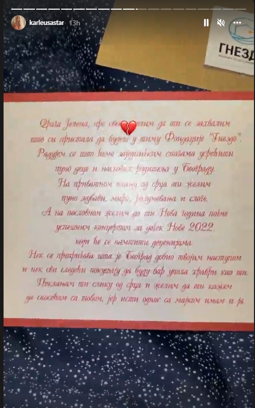 Јелена Карлеуша објавила је на Инстаграму да јој је на кућну адресу у Београду стигао поклон који ју је у исто време веома растужио, али и обрадовао.