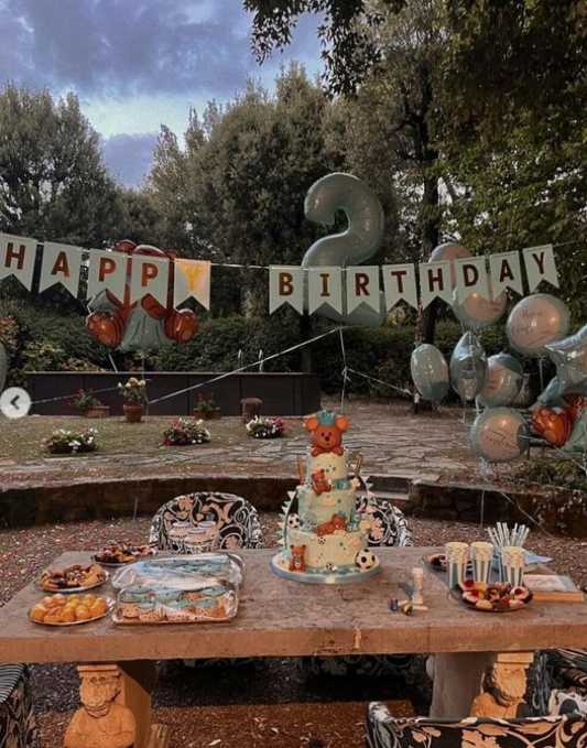 Двориште је било украшено плавим балонима и браон медама, а међу украсима су очекивано биле и фудбалске лопте. Торта у којој су уживали сви присутни је била на три спрата и изгледала је савршено. Цео призор је био магичан, а декорацију су били задужени управо родитељи.